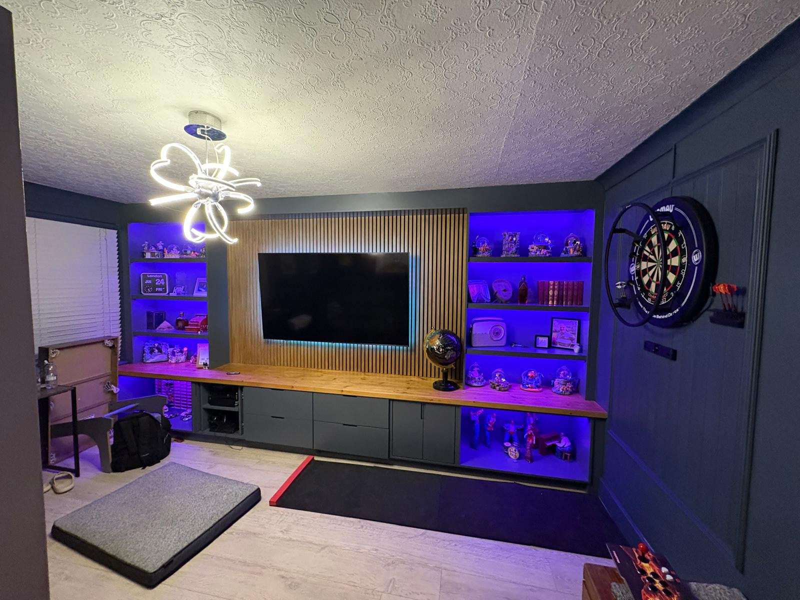 Made-to-measure media walls combining cabinetry, shelving and feature elements into a cohesive design that fits your room properly and functions beautifully.